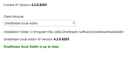 This field is used to select which application (OneStream Excel Add-In) needs to be compared to the current version of each that are currently installed on the user’s desktop. Click the selection arrow and select the appropriate application.