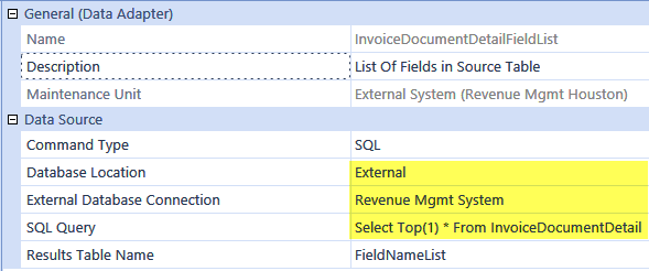 Fields from the external data query results are mapped to Dimensions creating a processing behavior similar to the behavior of a Delimited File. Using this mapping process enables a Connector Data Source to use all the same built processing capabilities available with file-based Data Sources. This capability enables the design of an external data Connector to be entirely focused on connecting to and reading data from an external source instead of focusing on integrating complex business logic. The specific business logic can be added to the Data Source Dimensions in the form of a Complex Expression or Business Rule. This design methodology will help with writing the Connector Business Rule in a way that requires very little maintenance by business users.