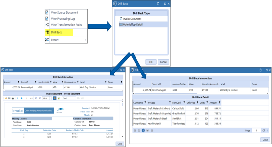 Opens a website or custom HTML web content in an external browser. From the Stage Import data grid, right-click on a data record, and select Drill Back. A dialog presents a menu of pre-configured Drill-back options. When you choose WebUrlPopOutDefaultBrowser, a standard browser session is launched, and you go to a web page based on variables.