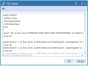 The following image shows the definition of a parameter that generates a list of FX Rate Types for an FX Rates Audit report.