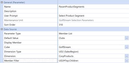 Select a dimension and click Member Filter Builder to ensure the ParamBaseProducts parameter references the ParamProductSegments parameter first, then returns a product list based on a selected segment.